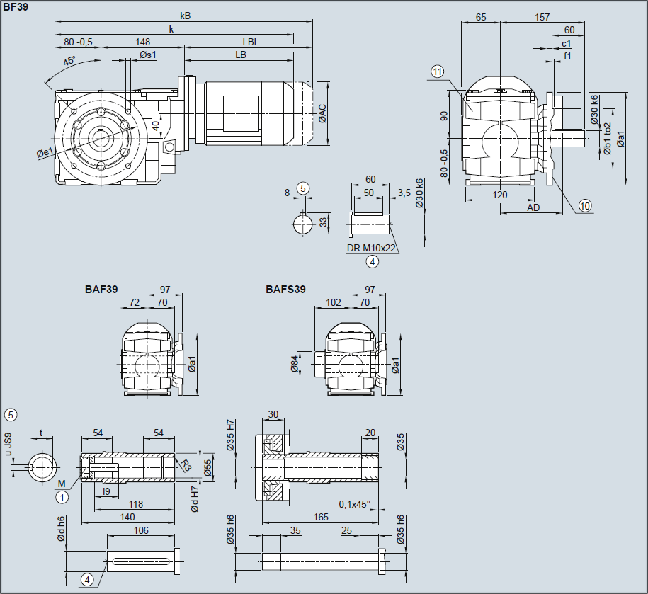 Редуктор BF39, BAF39, BAFS39 — Исполнение с фланцем