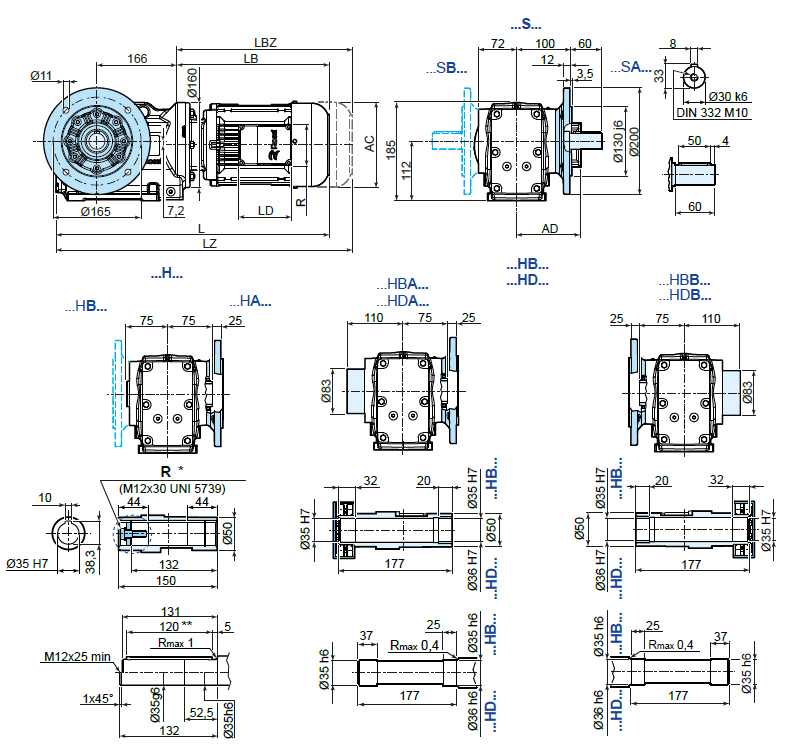 | LBZ | 260 | 293 | 329 | 362 | 392 | 440 | 482 |