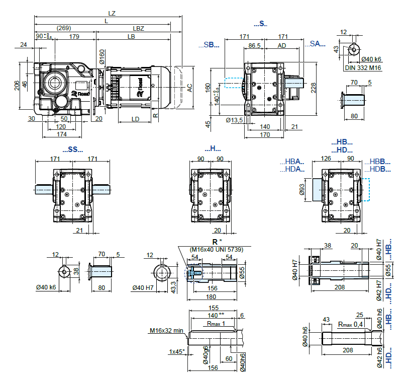 | LBZ | 260 | 293 | 329 | 362 | 392 | 440 | 482 | 547 | 607 |