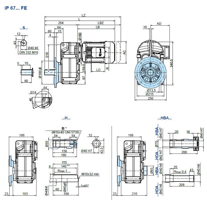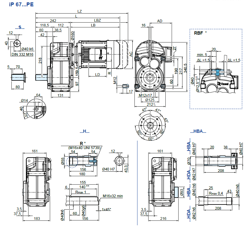 | LBZ | 260 | 293 | 329 | 362 | 392 | 440 | 482 | 547 | 607 |
