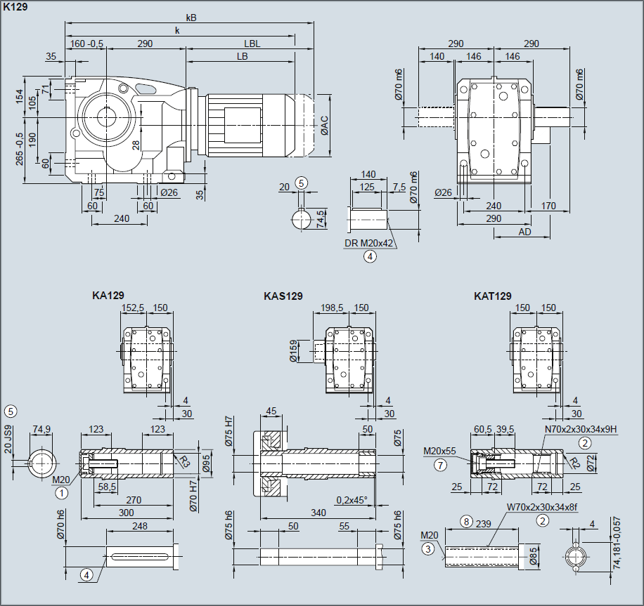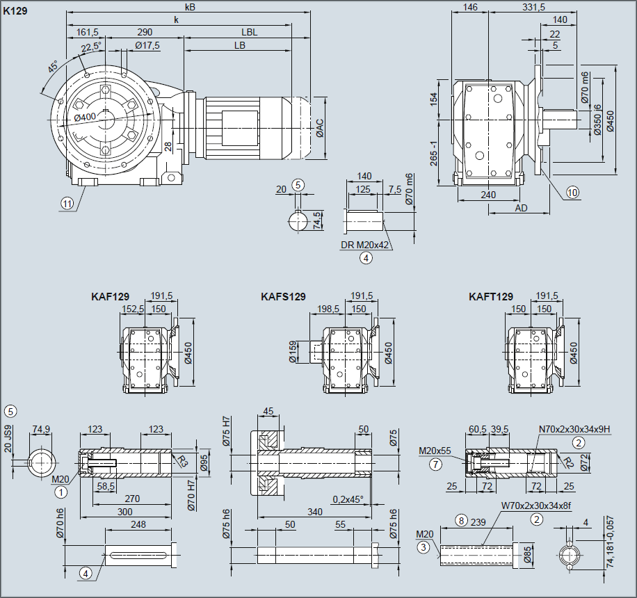 Редуктор K129, KA129, KAS129, KAT129 — Исполнение на лапах