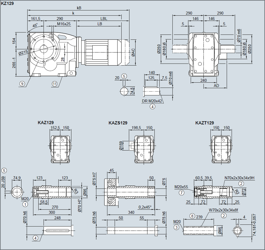 Редуктор KZ129, KAZ129, KAZS129, KAZT129 — Исполнение с окружностью отверстий под резьбу