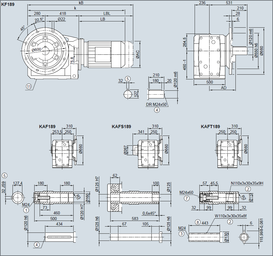 Редуктор KF189, KAF189, KASF189, KATF189 — Исполнение с фланцем