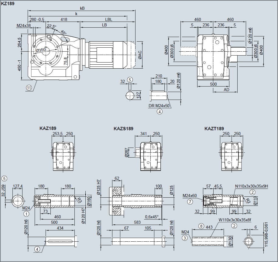 Редуктор KZ189, KAZ189, KAZS189, KAZT189 — Исполнение с окружностью отверстий под резьбу