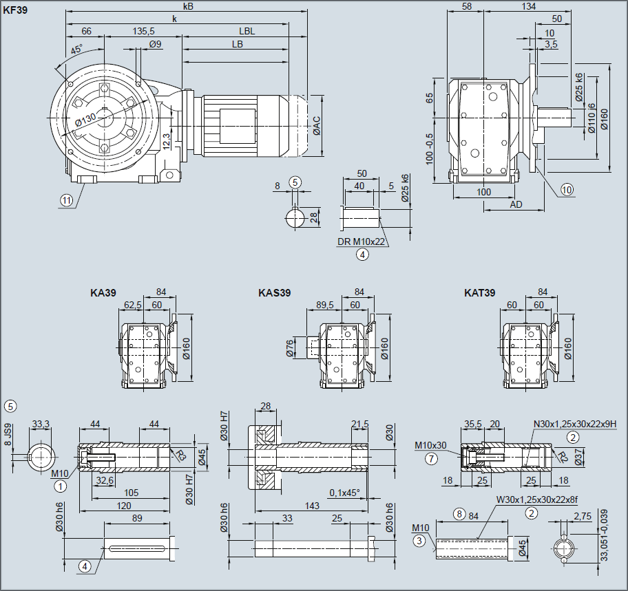 Редуктор KF39, KAF39, KASF39, KATF39 — Исполнение с фланцем