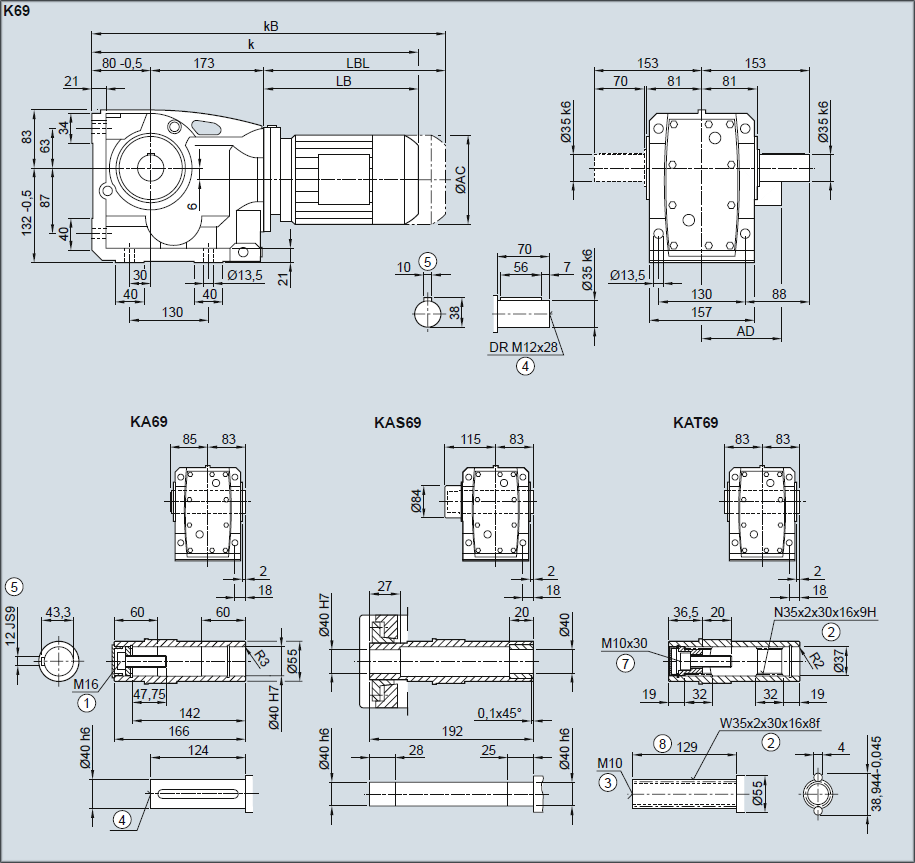 Редуктор K69, KA69, KAS69, KAT69 — Исполнение на лапах