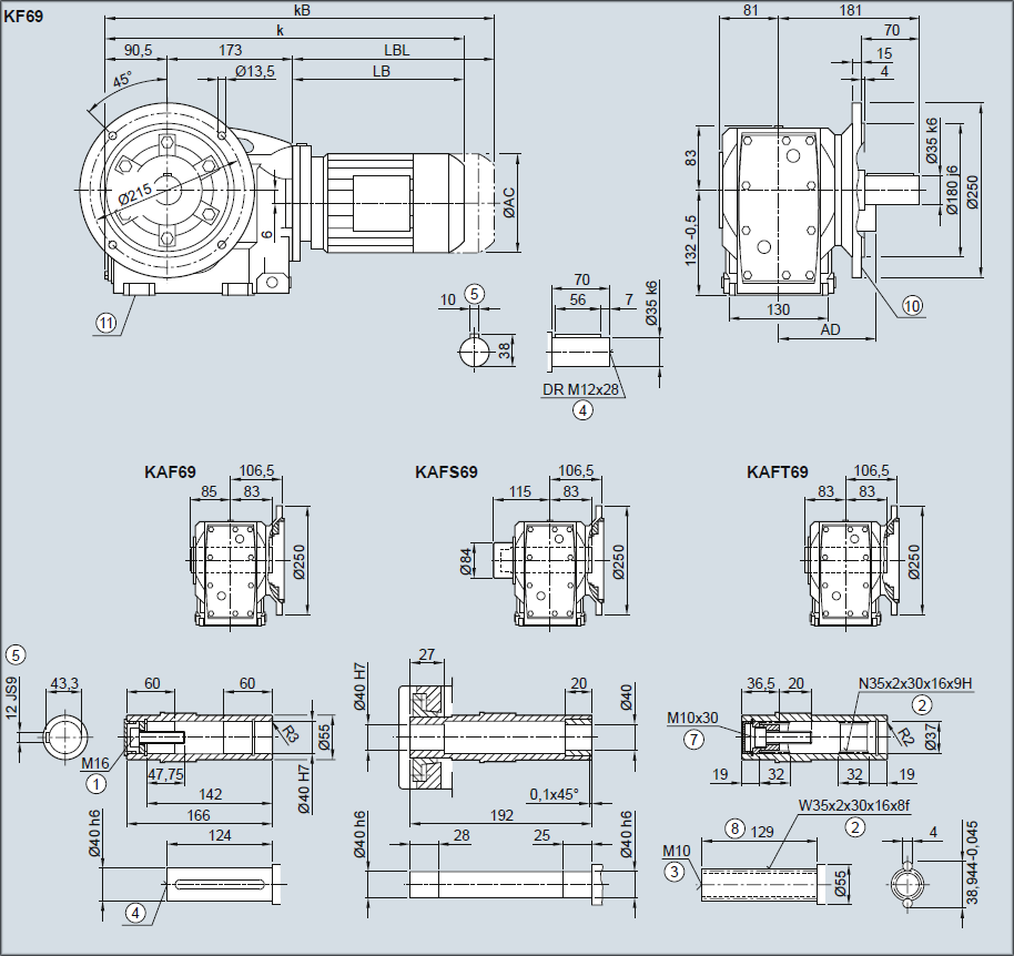 Редуктор KF69, KAF69, KASF69, KATF69 — Исполнение с фланцем