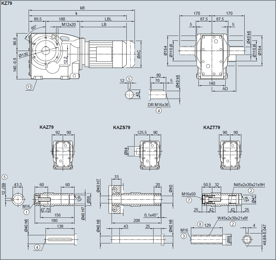 Редуктор KZ79, KAZ79, KAZS79, KAZT79 — Исполнение с окружностью отверстий под резьбу