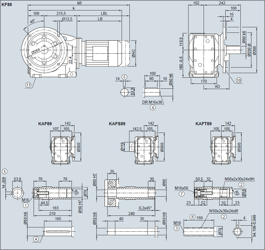 Редуктор KF89, KAF89, KASF89, KATF89 — Исполнение с фланцем