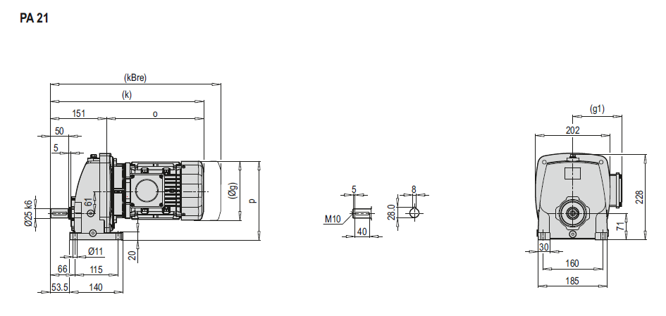 Соосно-цилиндрические мотор-редукторы PA 21, PF 21