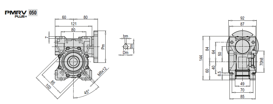 | PMRV | d | B | B1 | G1 | L | L1 | f | b1 | t1 |