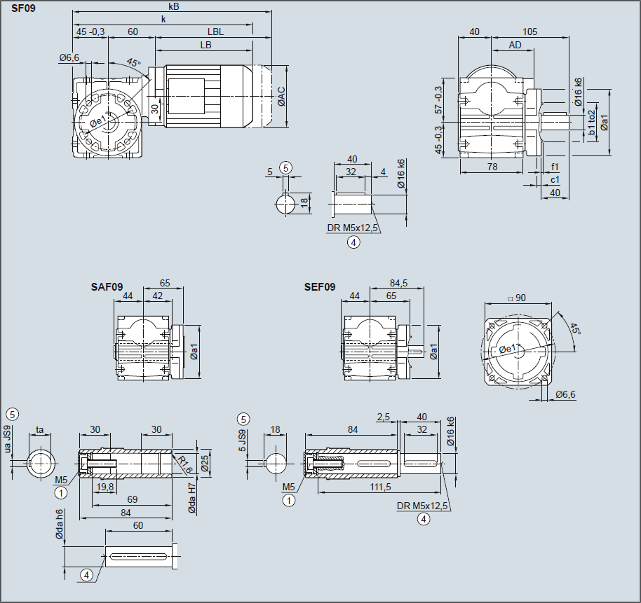 Редуктор SF09, SAF09, SEF09 — Исполнение с фланцем