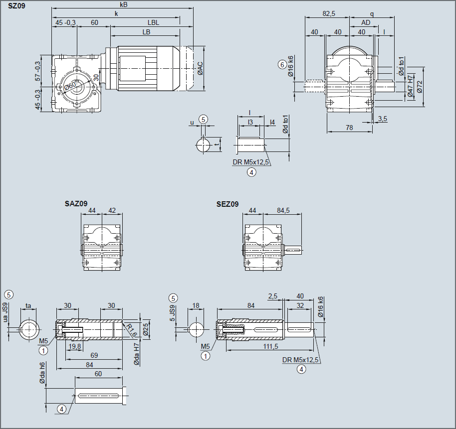 Редуктор SZ09, SAZ09, SEZ09 — Исполнение с окружностью отверстий под резьбу