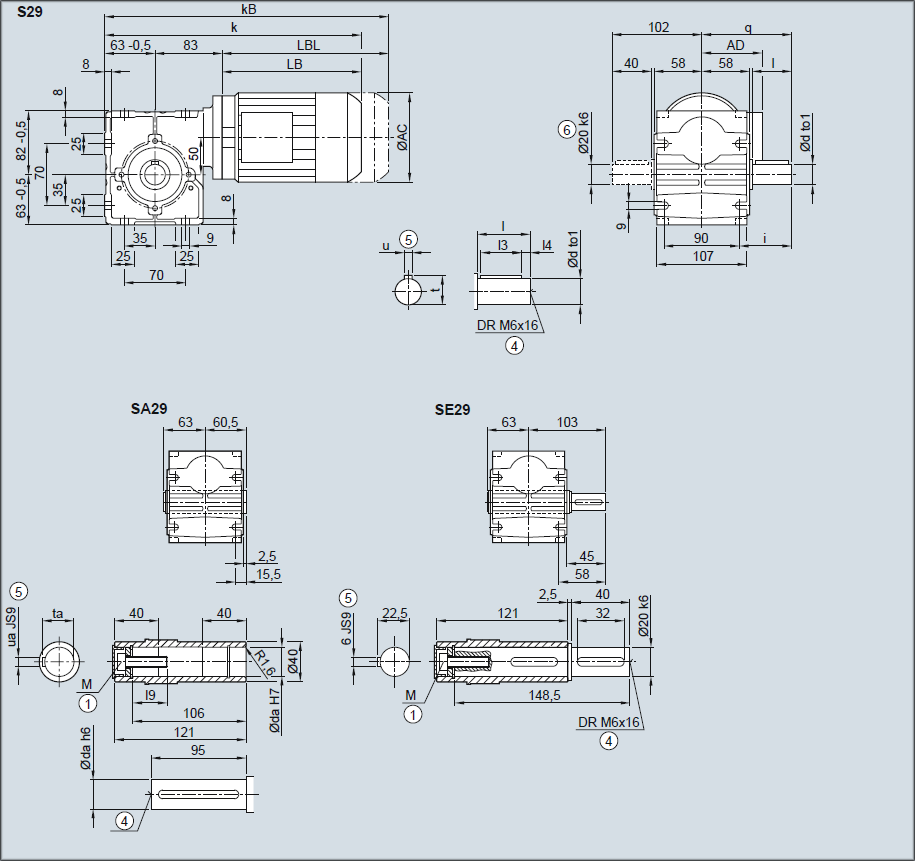 Редуктор S29, SA29, SE29 — Исполнение на лапах