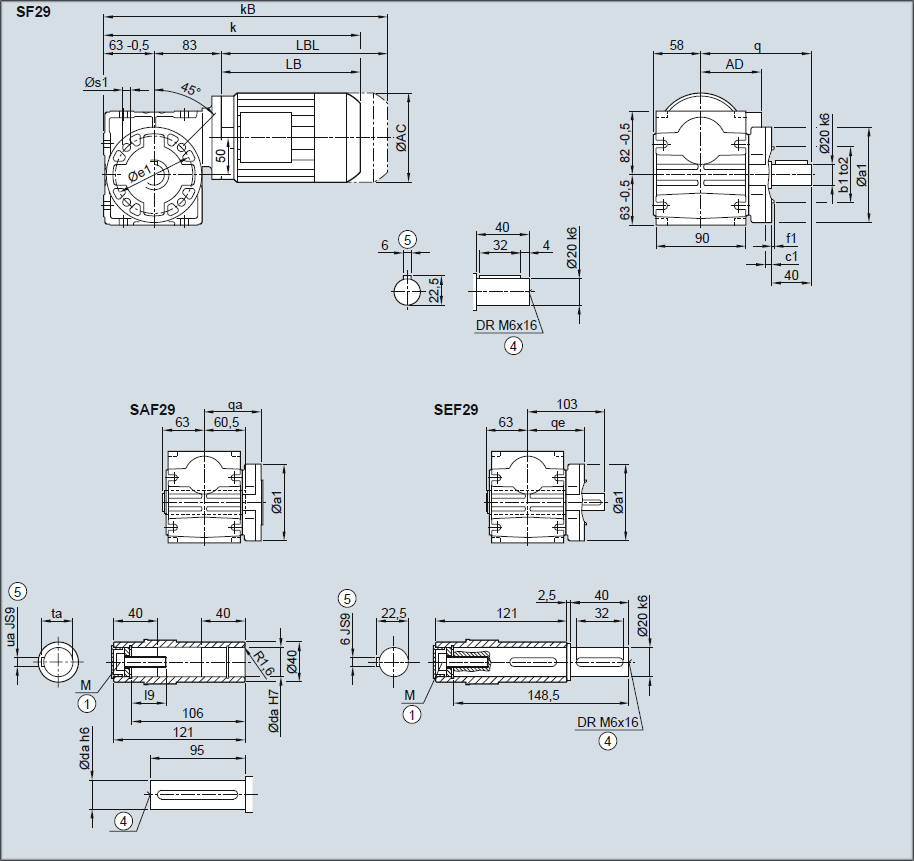 Редуктор SF29, SAF29, SEF29 — Исполнение с фланцем